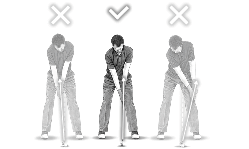 또한 그립을 잡고 어드레스를 섰을 때 손이 본인의 몸에서 벗어나 있는 것은 아닌지 확인을 할 필요 있습니다. 손의 위치가 왼쪽 허벅지보다 밖으로 벗어나게 되면 헤드의 뒷부분이 뜨면서 자연스럽게 헤드는 닫히게 됩니다. 그 상태로 스윙을 하게 되면 훅이 날 가능성이 큽니다.
