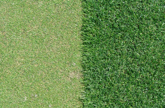 퍼팅 표면에는 잔디가 매우 짧게 깎여 있지만 프린지는 약간 더 높게 관리가 되어 있으며 그 너머에는 깔끔하지 않은 러프가 있습니다.