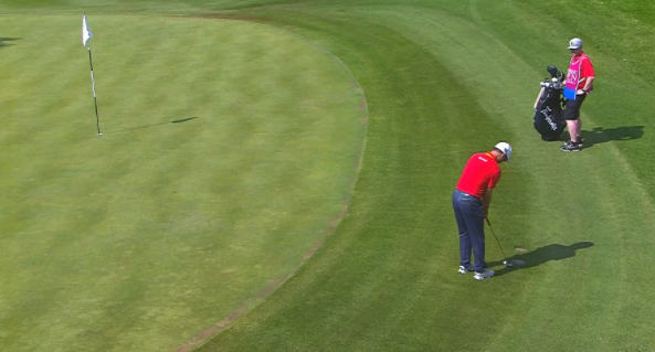 프린지는 잔디가 상당히 낮게 깎이기 때문에 많은 골퍼들이 공이 프린지 위에 있을 때 퍼터를 선택합니다. 하지만 프린지 잔디가 그린 잔디보다 높기 때문에 공이 더 느리게 굴러가는 것을 퍼팅을 치는데 고려를 해야할 것입니다.