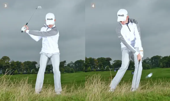 셋째, 본인이 원하는 더 가파른 각의 샷을 만드는데 도움이 되도록 백스윙 시 클럽헤드를 가파르게 들어 올리는 느낌을 받아야 합니다. 동시에 손목과 팔을 사용하는 스윙 보다 큰 근육을 사용하고 몸통을 돌려 힘을 만드는 것을 기억해야 합니다. 쉽게 말해 이러한 스윙을 하기 위해서는 손목을 조금 더 일찍 코킹을 해야 가파르게 들어올리는 느낌을 받을 수가 있습니다.